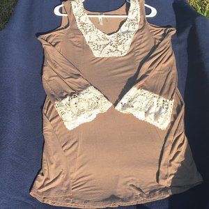 Andree by Unit Full Size Cold Shoulder Crocheted Flare Sleeve Dress, size Small