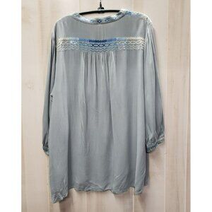 Andree by Unit Embroidered Gray Tunic Blouse, Plus 2X, rayon peasant boho