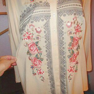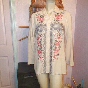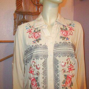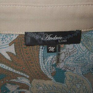 Andree by Unit Embroidered Top Size M Tunic Button Up Mix Media Artsy Festival