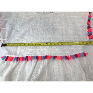 Andree by Unit Eyelet White Cotton Top Neon Multicolor Fringe Tassels Size 1X