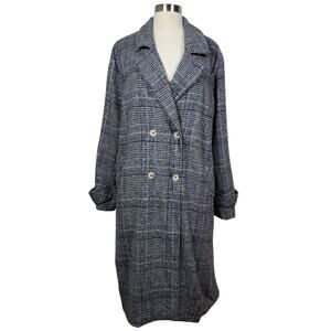 Andree by Unit Gray Plaid Double Breasted Coat Jacket Size Large Classic Chic