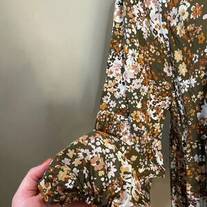 Andree by Unit Green Floral Top with Ruffle Hem and Balloon Sleeves