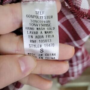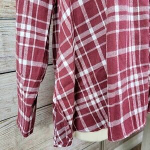 Andree by Unit Lauren Oversized Plaid Top Burgundy Size Small. I love the fit on this flannel top! Button closure with roll up sleeves, Lightweight but not sheer. Easy, oversized fit. Burgundy Maroon Red Color. Size Small. Excellent Used Condition. 60% Polyester; 30% Cotton; 10% Viscose.