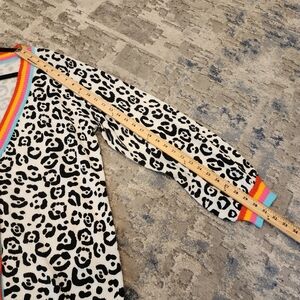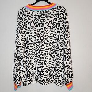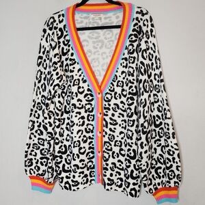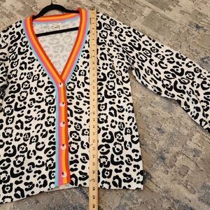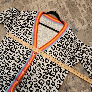 andree by Unit balck white leopard print with rainbow trim knit cardigan.
