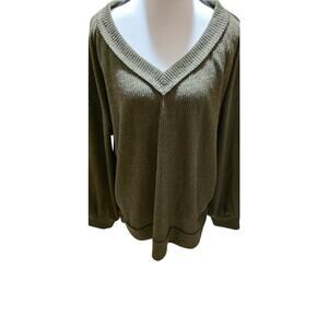 Andree by Unit Olive Stretch Knit Top – Soft Short Sleeve – S