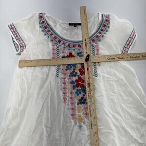 Andree by Unit Shirt Womens Small White Embroidered Floral Boho Rayon Tunic Top