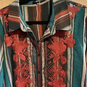 Andree by Unit Striped and Floral Embroidery Dress / open jacket Size 2X
