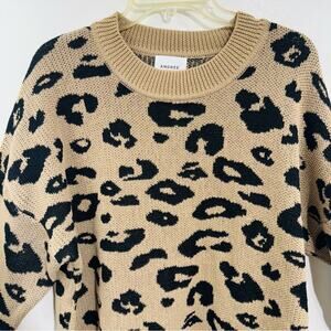 Andree by Unit Sweater Tan Black Leopard Animal Print Knit Pullover Sz M New