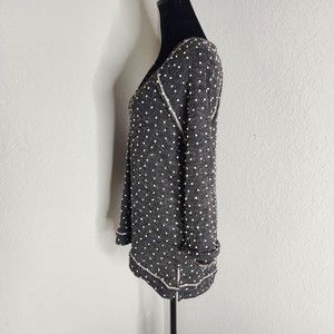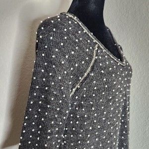 Andree by Unit Sweater Top Women Small Gray 3/4 Sleeve V-Neck PomPom Detailing