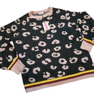 Andree by Unit Sweater Womens 1X Plus Geometric Animal Leopard Crewneck