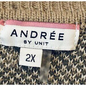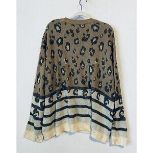 Andree by Unit Sweater Womens 2X Brown Animal Print Striped Crew Neck Boho