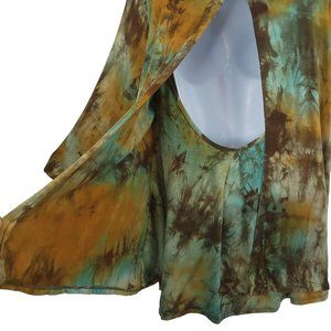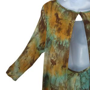 Andree by Unit Top Open Back Womens Size M Long Sleeve Green Brown Pullover