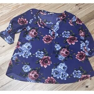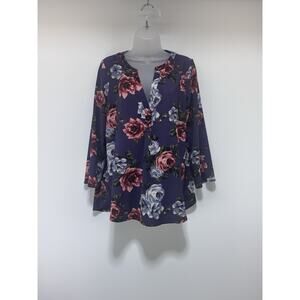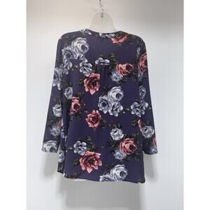 Andree by Unit Top Purple Floral Long Sleeve Artsy Boho Peasant Blouse Women’s M