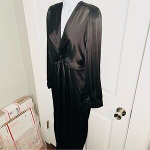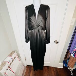 Andree by Unit VNeck Knot Front Satin Jumpsuit Black M
