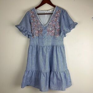Andree by Unit Woman’s Size Medium Dress Mini Embroidery blue and white stripes