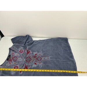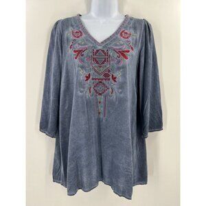 Andree by Unit Women Small Blue Embroidered Floral Aztec 3/4 Sleeve Tunic Top