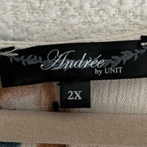 Andree by Unit Womens Floral Print V-neck 3/4 Sleeve Top, Plus Size 2X