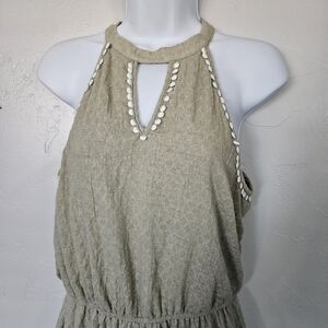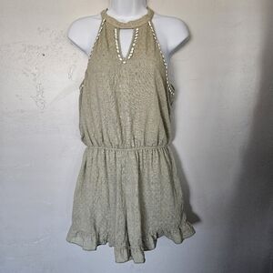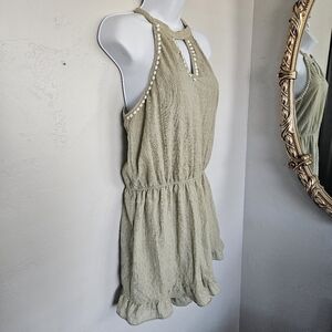 Andree by Unit Women's Medium Sage Green Halter Top Romper Pom Pom Ric-Rac Trim