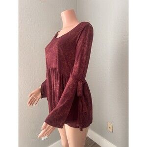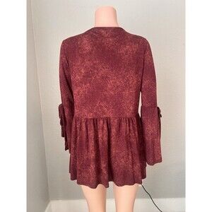 Andree by Unit Womens Red TIE DYE Peplum Top Sz Medium Bell Sleeves soft Blouse
