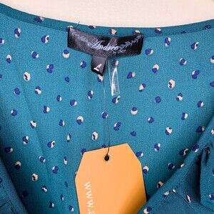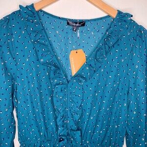 Andree by Unit long sleeve tiered dress teal green printed size large