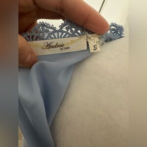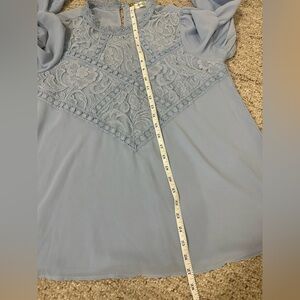 Brand new with tags, this lovely powdered blue top features lace details. size small (S).