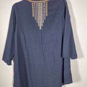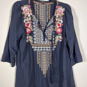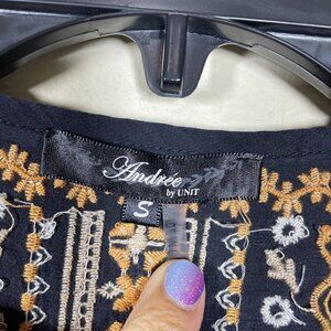 Andree by Units Women's LS Heavy Floral Embroider V-Neck Top Small