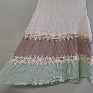 Andree by unit Tank Top Womens S Brown Green Embellished Lace Boho