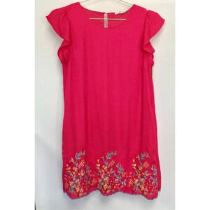 Andree by Unit Womens Pink Floral Embroidered Flutter Sleeve Shift Dress Small