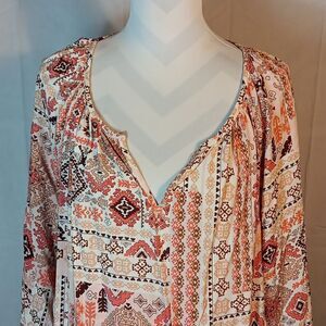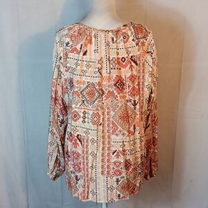 This very colorful earth tone print long sleeve Andree by Unit Blouse is a size 1X with a pit to pit measuring 24" and a length of 28". In excellent condition. All offers are welcome.