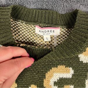 Andree by Unit Leopard Print Green Tan Sweater Size Large