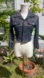 Andres Otalora Cropped Jacket with faux front pockets. No size tag or material tag. Approximate measurements laying flat are 17” pit to pit, 13 1/2” hem, and 15 1/2” neck to hem length. Color is a denim blue with gold specks. Fabric is stretchy. In great preowned condition with no flaws except for the missing tags.