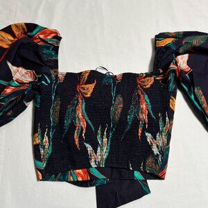 Andres Otalora X falabella Cropped Puff Sleeve Blouse Tie Navy Tropical XS