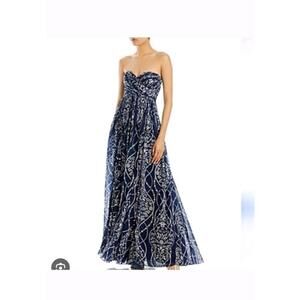 Andres Otalora Plunge V Neck Fit & Flare Macondo Maxi Dress Size 6 Navy Blue