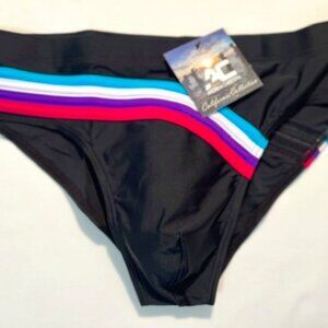 Andrew Christian - Size S Solid Swim Bikini Brief with Multi Colored Stripes