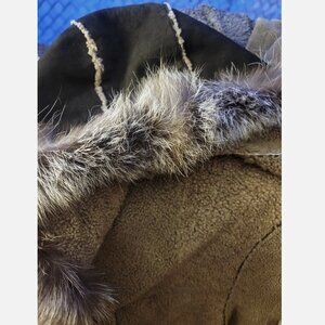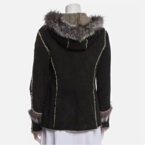 Andrew Elissee USA Luxury Shearling Real Fur Trim Hooded Coat Jacket Sheepskin M
