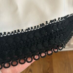 Andrew GN white shift dress with black lace trim