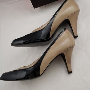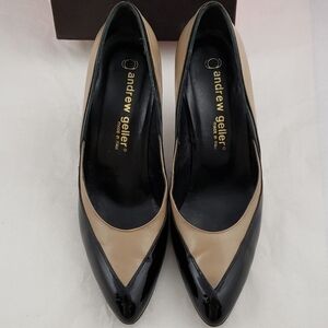 Andrew Gellar Como Taupe & Black leather Spectator Pumps 8AA FGUC In Box