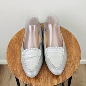 Andrew Geller Silver Metallic Leather Slip On Loafers Women’s Size 8
