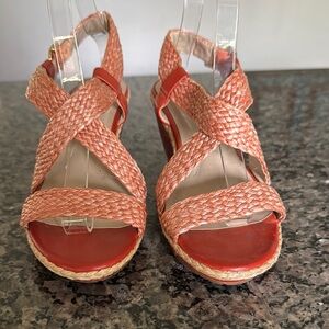 Andrew Geller Wedge Sandals with rafia Braided Straps EUC 8
