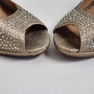 Andrew Giller TAYEN Gold Glitter Open Toe Heel Pumps Size 9M