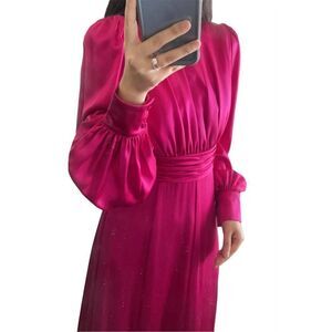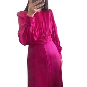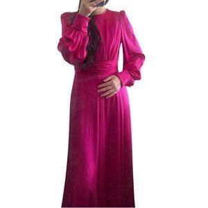 Zip closure in the back. Pleated in the waist.