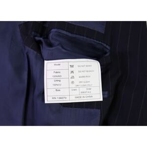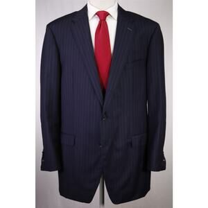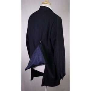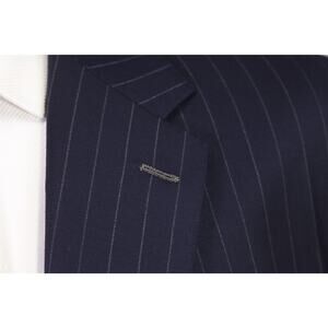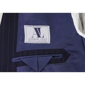 Andrew Lock Custom Tailored Navy Blue Pinstripe 2-Btn Wool Handmade Suit 46L