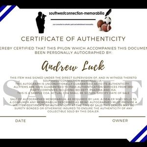 4x6 Proof Photograph of ANDREW LUCK signing this EXACT End Zone Pylon for Southwestconnection-Memorabilia, Will Be Included Free with Purchase (As Shown)