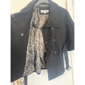 This unique coat is a wool blend . It has an adjustable belt , snap front opening , bat wing arms , and has some weight to it . It is sure to be a wonderful addition to your wardrobe this winter .