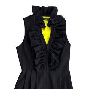Andrew Marc Black Midi Dress Sleeveless Ruffle Tank Dress Size 2 Career Work
