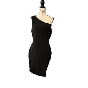 Andrew Marc Black One shoulder Bodycon Party Cocktail Dress Size Large Designer