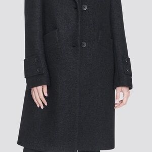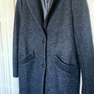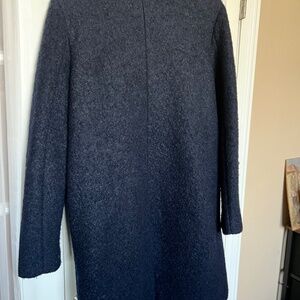 single breasted, slightly tailored slim coat featuring a flattering notch collar and easy access welt pockets. Crafted in our classic, textured pressed wool boucle, with an easy 2-button closure makes it the perfect throw on coat all season long. Worn 2 times.