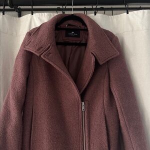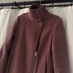 The slim profile and sleek zipper front of this longline coat lends a modern appearance crafted from richly blended wool that you'll always grab for. Wore on one vacay. 22” bust and 44” length.