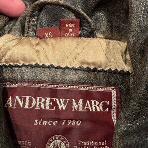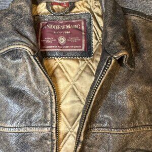 Andrew Marc Distressed Heavy Leather Jacket XS Bomber Moto Quilted Brown Gold
