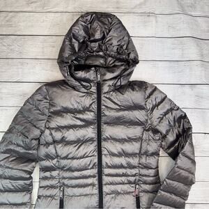 Andrew Marc Down Filled Lightweight Hooded Puffer Jacket Packable Silver Size XS